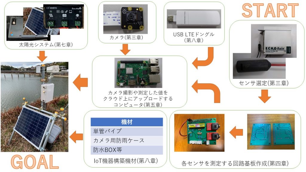 その後、センサで測定した値やカメラで撮影した画像をクラウド(インターネット)上にアップロードするコンピュータにプログラムを書き込みます。(第五章)