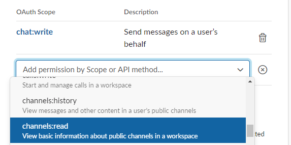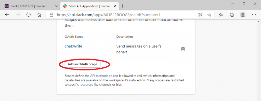 再度「Add an OAuth Scope」ボタンをクリックします。