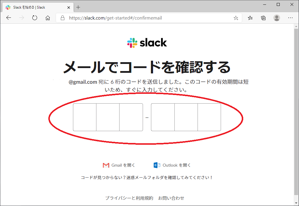 登録したメールアドレスにコードが届きますので、コードを入力します。