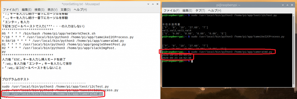 sudo /usr/local/bin/python3 /home/pi/app/cameraCmd.pyをコピーし、LXTerminalに貼り付け、「エンターキー」を入力し実行します。