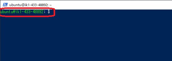 「ubuntu@・・・」と表示され、サーバの遠隔操作が可能な状態となります。
