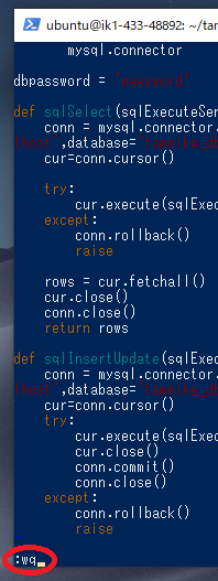 sudo vim /home/ubuntu/tameikepython/fnSQL.py