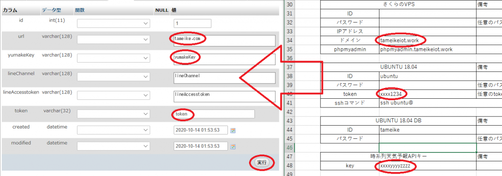 token欄に、ため池監視システム重要情報エクセルファイルのUBUNTU 18.04欄の「token」情報を入力します。